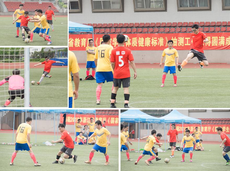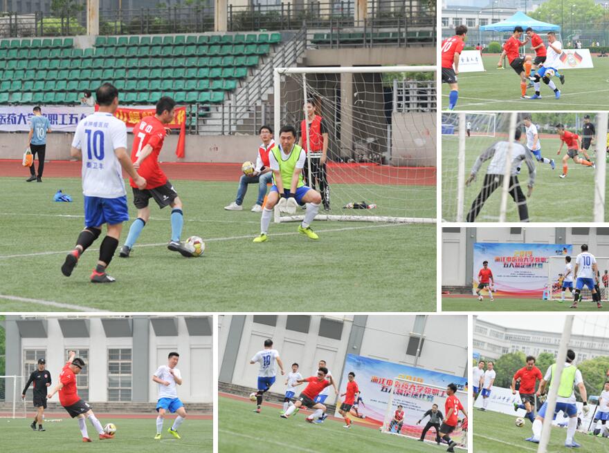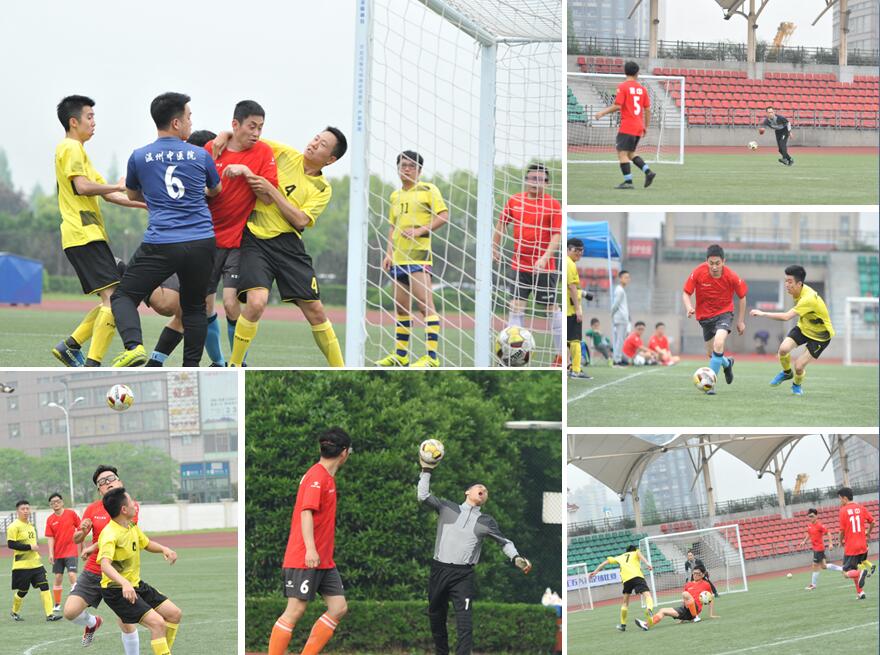 本次大赛,我院足球队派出张健、林天宝等10位同志参赛。比赛第一天,运气略差的我院足球队在小组赛中,被安排在下午并连续迎战两支队伍,中间只有20分钟休息。所幸我院足球队实力较强,气势如虹,首战2:0轻取温州市中医院队,次战调整策略,有计划轮休主力,以1:1逼平杭州市口腔医院队,顺利实现小组出线,进入八强。
