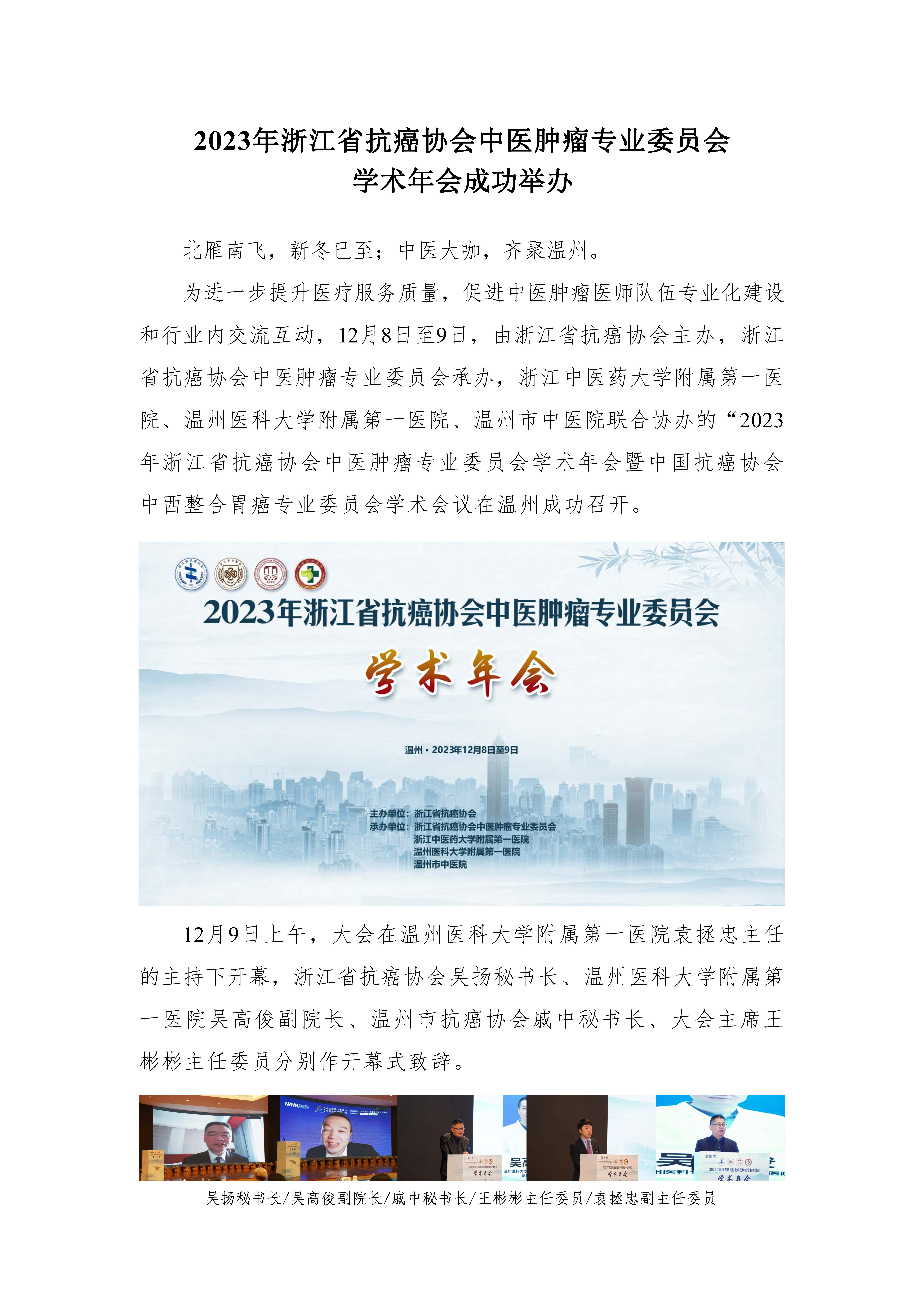 2023年浙江省抗癌协会中医肿瘤专业委员会学术年会成功举办