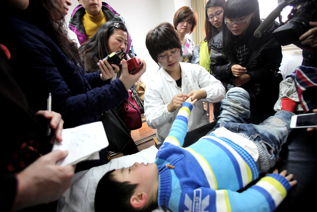 “食积的治疗手法有补脾经、清胃经、按揉板门、运内八卦、按揉脾胃俞……”24日,浙江省中医院一场专为家长开设的小儿推拿健康沙龙,吸引了许多家长围观学习。现场医生手把手地教会一些年轻家长取穴位及一些按摩手法技巧。其简便、疗效好、舒适的特点,很受家长喜欢。