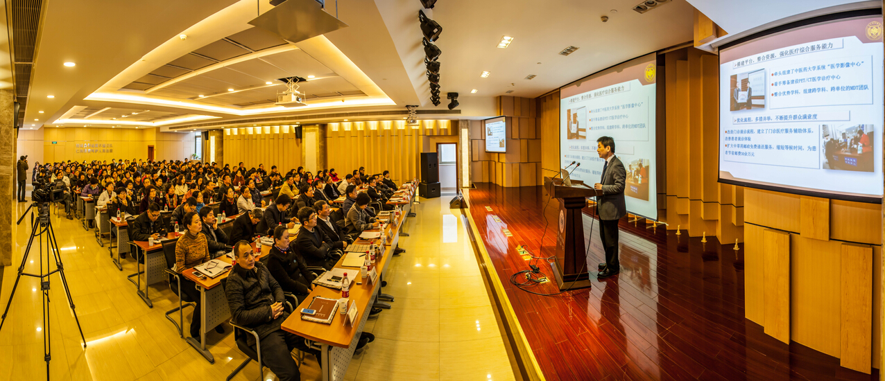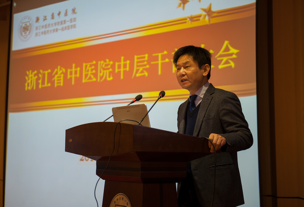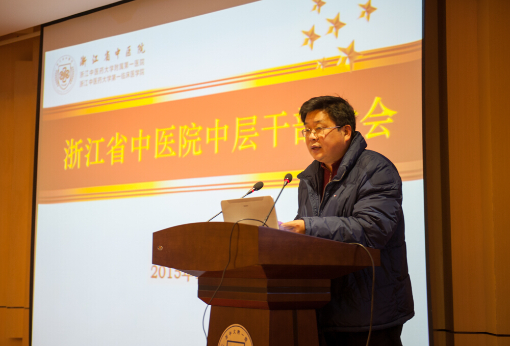 会上,医院院长吕宾作了题为《乘改革春风 促内涵建设 借转型良机谋跨越发展 ——医院发展工作报告》的主题报告。报告中,他回顾了医院医教研各项工作的发展情况及取得的成绩,并分析了医院发展面临的形势。他指出,2014年,党政班子顺利完成换届,组建了年轻、高效、务实、创新的新一届领导集体,完成职能部门和临床科室负责人竞聘,有效提升执行力,积极强化人才队伍建设,学科人员梯队不断优化,医院发展呈现欣欣向荣之态势。内外技护精诚合作,多学科联合模式成为医疗工作新常态,学科、专科建设不断深化。创新“双下沉”托管机制,首创“3+1+1”帮扶模式,获得省委、省政府好评。科研能力持续增强,国家中医临床研究基地建设通过国家局督导检查,省重大科技专项获得突破,位居全省第二,名老中医工作室建设“浙江模式”获国家肯定。医教一体化有效推进,教学质量、教学水平得到学生全面认可。打造智慧医疗,顺利完成HIS系统升级改造,医银通项目顺利上马,掌上省中(APP)、省中官微等先后上线,媒体应用与宣传能力得以提升。下沙院区发展打开新局面,科研综合大楼进入精装阶段,启用在即。后勤服务能力不断加强,各类基建项目顺利完成,行政后勤满意度显著提升。