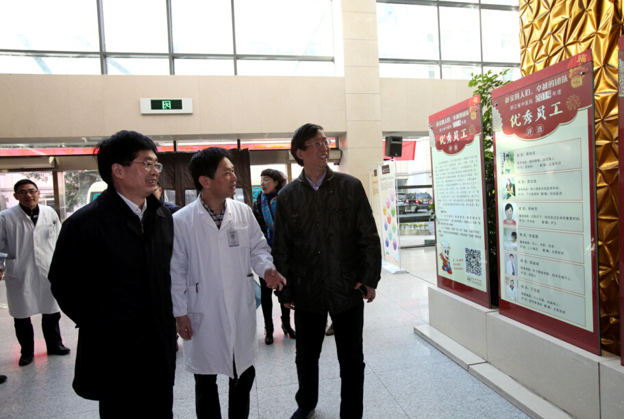 2月10日一早,寒风凛冽,郑继伟副省长等一行来我院慰问专家和保健工作人员。随行的有省政府秘书长李卫宁,省政府办公厅教卫处处长吕伟强,省卫生计生委主任杨敬,省卫生计生委保健局副局长原莳等。
