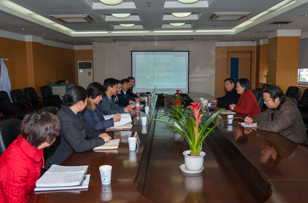 在与院区班子座谈会上,吕宾就医院运营情况、中医药事业发展、人才队伍建设、学科建设等方面作了汇报,下沙院区执行院长、医院常务副院长毛威就院区2014年运行情况、现阶段重点工作和2015年工作目标作了介绍,黄琦就科研综合楼建设和两院区协作方面工作作了汇报。在听取汇报后,孙秋华一行对2014年度医院及院区各方面工作表示满意,并提出了三点要求。一是医院及院区班子要进一步强化精细化管理,完善两院区运行机制,促进两院区优势互补,协同发展;二是要围绕综合楼建设,进一步落实相关配套保障方案,加强学科建设,加强人才队伍建设,增强后勤保障能力,确保科研综合楼保证质量、尽快尽早投入使用;三是要聚焦远景,强化内涵建设,充分发挥广大职工的积极性,凝心聚力、注重文化内涵建设,为实现院区远景目标打好基础。