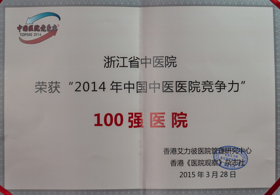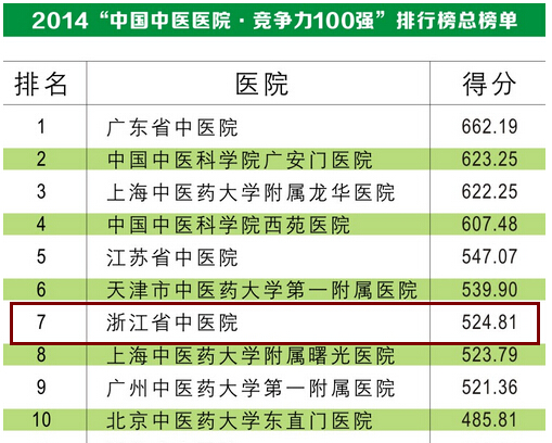 3月28日晚上,在广州中国大酒店举行的“2015中国医院竞争力论坛”上,香港艾力彼医院管理研究中心发布了“2014中国中医医院竞争力排行榜100强”,我院位列第七名。近年来,香港艾力彼医院管理研究中心每年基于科学、量化的评价体系发布“中国医院·竞争力排行榜”,中医医院竞争力排行榜为今年首次发布。