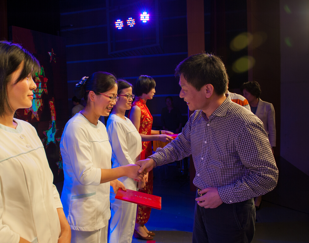5月11日夜,市工人文化宫多功能厅内流光溢彩,喜气洋溢,医院于此隆重举行5·12国际护士节表彰大会暨文艺,对10个“温馨病房”和30名“温馨护士”进行了表彰。医院院长吕宾、党委书记曹毅、常务副院长毛威、党委常务副书记黄琦等党政班子,各科室负责人、一线护士、医生观看了演出。