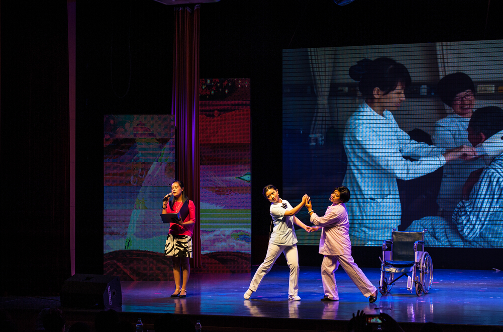 演出结束时,院领导们与获奖代表们、演职人员热情握手,祝贺演出成功,现场气氛达到了高潮。