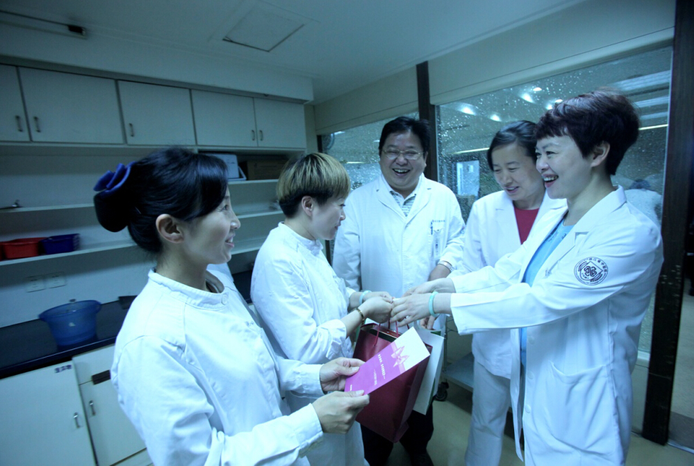 他们每到一个科室,都与护理人员亲切握手、交谈,同时将医院班子致全院护士的祝福信、暖心礼品和一盆象征“热情、关心”的盆栽送到护士的手中。在紧张而又忙碌的一天即将开始的时刻,亲切的握手、温暖的问候给天使们带来了巨大的安慰与鼓舞。