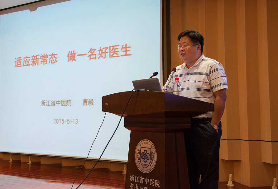 课上,曹毅以“适应新常态 做一名好医生”为主题,解读了社会及经济发展的新常态、医院改革和发展的新常态以及新常态下的医生职业生涯规划。在社会及经济发展的新常态中,他着重讲解了“四个全面”提出的历史背景、主要进程以及相互之前的关系,“三严三实”开启了改进工作作风的新模式等。在医院改革和发展的新常态中,他着重介绍了医院在新医改下谋求发展和实现共赢的新思路,帮助规培医生认识医疗事业发展脉络,指导他们做好职业生涯规划。