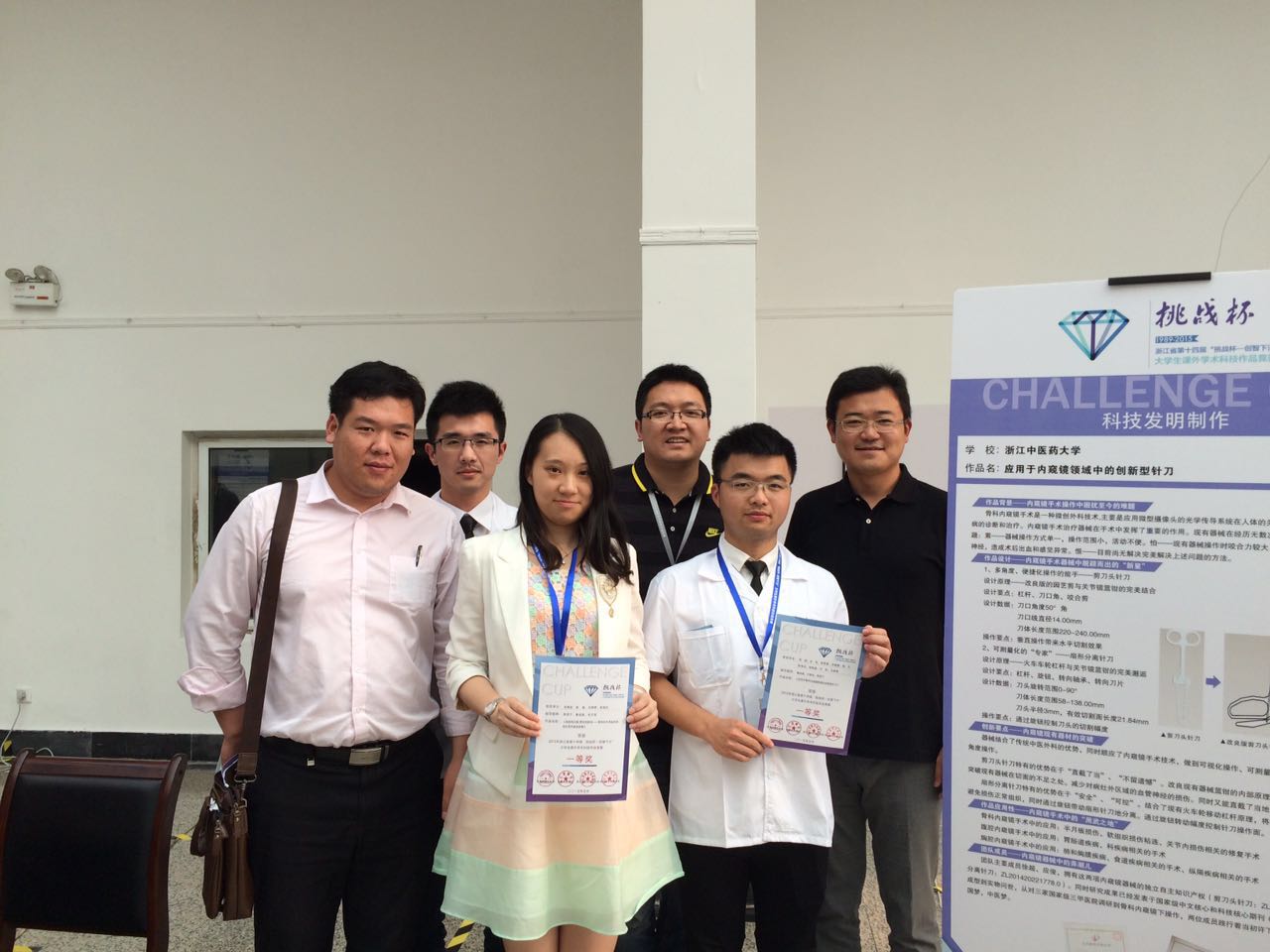 5月22日-24日,浙江省第十四届“挑战杯”大学生课外学术科技作品竞赛在杭州电子科技大学举行。今年,全省约有2万多名学生报名参加“挑战杯”大学生课外学术科技作品竞赛。经过各校级预赛选拔,全省共有63所高校申报了1009件作品参加省级复赛,内容涉及自然科学、哲学社会科学、科技发明制作三大类别,涵盖了机械控制、能源化工、信息技术、生命科学、经济、法律、哲学、社会、教育、管理、数理等11个专业方向。经过复赛评审,来自省内37所高校的225件作品入围此次决赛。我院2012级中医学七年制专业张维新团队以及2014级中西医结合临床专业徐超团队分别领衔两项学术科技作品项目闯入决赛。
