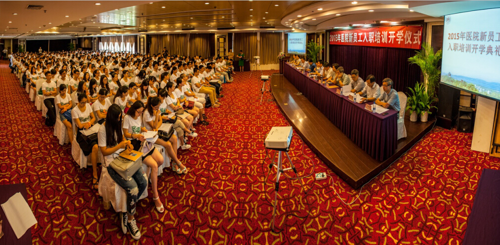 8月3日,2015年新职工入职典礼暨新职工岗前培训开学仪式在华辰国际酒店举行,医院两院区党政班子全体成员出席仪式与380余位新职工亲切见面。医院院长吕宾、党委书记曹毅代表医院党政班子和全院职工对新职工的到来表示热烈欢迎并寄予良好祝愿。