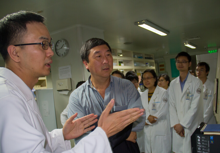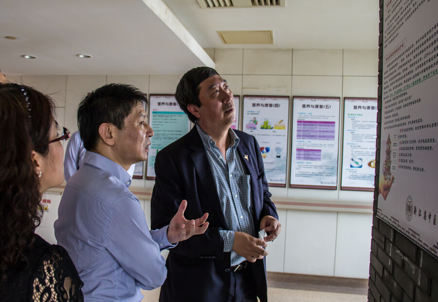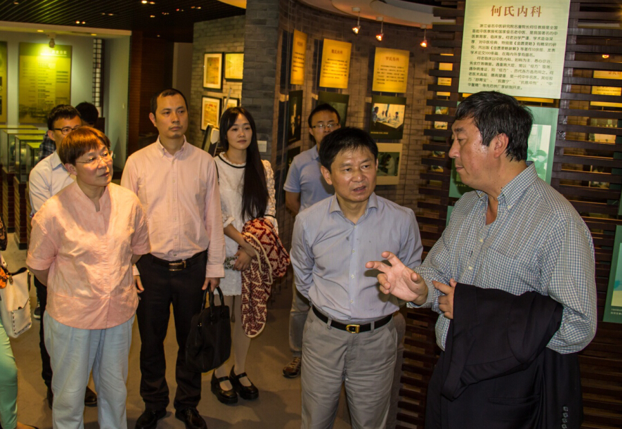 在吕宾院长陪同下,沈祖尧校长一行参观了医院院史陈列馆,为深厚的医院文化沉淀所吸引,对我院“精诚合作成就卓越团队,仁和济世呵护人类健康”的核心价值观表示赞同。在参观消化内科病房和消化内镜中心时,沈祖尧充分肯定了我院临床服务能力和水平,饶有兴趣地观看了病区展示的患者教育栏目、中医保健知识展示等。访问中,沈祖尧一行还参观了医院浙江省重点实验室——浙江省胃肠病生理病理重点实验室,对我院消化领域多个研究方向均表示了极大兴趣。