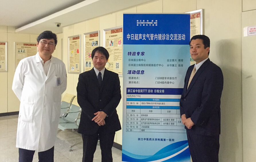 10月29日,呼吸科邀请了日本国立癌中心出云雄大教授和日本国立病院机构姬路医疗中心水守康之教授,在我院开展了中日超声支气管内镜诊治交流活动。