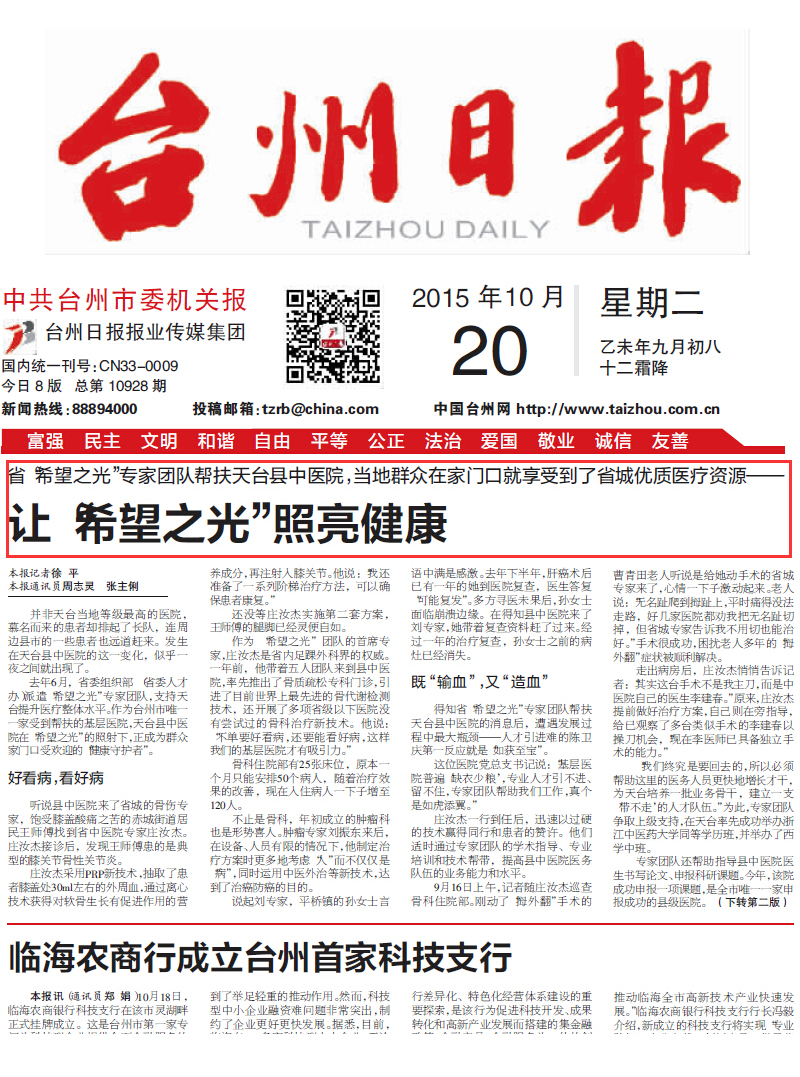 【浙江日报】“希望之光”照亮健康——我院专家团队帮扶天台县中医院获肯定