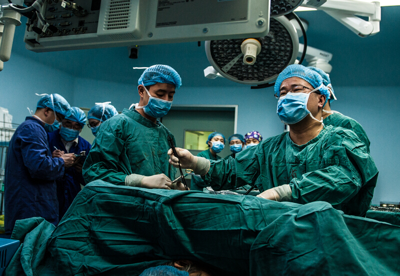 当天下午,近藤启史一行参观了医院手术室,并观摩了童红卫主刀的胸腔镜左下肺癌根治手术,对医院胸外科胸腔镜手术水平给予了高度评价。术后,近藤启史与胸外科共同对一个疑难病例进行了讨论和会诊并参观了肿瘤科、中药房。