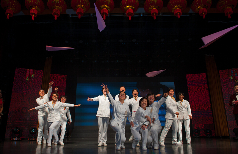 晚会上,医院班子和各界友人通过“省中电视台”向大家表达了感激、感谢和祝福,也表达了对医院走进“十三五”的美好祝愿。随后,晚会在工会组织的舞蹈《花开盛世》中隆重开场,舞蹈刚柔并用,既有蹁跹的身姿,也有阳刚的腾挪,两相兼济,传神地展示了新时期职工们的精神风貌。紧接着,婀娜多姿的舞蹈《江南水乡》(安吉分院),将全场带入了烟雨江南的柔美之中,“江南可采莲,莲叶何田田”,舞未毕而人已醉,大家都沉浸在了对优美舞姿的陶醉中。《把时间留给了谁?》由护理部组织的小品,幽默风趣的表演讲述的却是身边最真实的故事,看着笑着,不知不觉中,我们早已泪流满面,是啊,我们把时间都留给了谁呢?无论时间留给谁,心里从满阳光最重要,一曲由本院十佳歌手和乔司监狱医院职工共同演唱的《阳光路上》,歌声绕梁,直干云霄,心里的那淡淡的忧伤也随之转化成了继续奋斗的动力。《红》,离退休老同志们的这个节目更是赢得了台下雷鸣般的掌声,参演人员平均年龄64岁,可是那饱满的精神,曼妙的身姿,发自内心的喜悦和自豪,无不显示了老同志们“夕阳无限好”的风貌和不老的“神话”。紧接着,乔司监狱医院职工带来的民乐演奏《神话》,如泣如诉,如怨如慕,十分的精彩绝伦,让我们深深领略了警花多才多艺的另一面。领略了神话,白杨街道的姑娘们带来了一段异域风情,印度舞《风情舞动》,优雅而又富有动感和节奏韵律的舞蹈,火辣的热舞,使“把持不住”的男主持人大喊来年一定要多到白杨街道开展分级诊疗工作。每年医院都招很多的新员工,每年都有许多多才多艺的新鲜血液融入省中大家庭,晚会上,他们的节目《省中达人秀》,生动活泼地展示了新生力量们欣欣向荣的精神状态,和才艺兼修的一面。下沙院区八病区的舞蹈《咋了爸爸》,搞笑、幽默,逗得台下观众们开怀大笑。随后由院办组织的采访环节,现场邀请两院区急诊学科的医护恳谈“过年值班与对家人思念”的话题,并连线了他们的家人,男儿向来心如铁,待到动情泪如注,真情打动的不仅仅是自己的心,更能感染“同一个屋檐下”的每一位同道。“家”是所有词汇中最温暖的一个,江荣林副院长一曲《家》,高亢有力,催人泪下,儿行千里母担忧,在外拼搏的人们,无论你在何方,家永远是你最温暖的港湾。随后,新员工的吉他独唱《因为是医生》,自豪而又略带忧郁的音乐声中,心情渐渐恢复平静,因为我们是医生,守护生命、寿人寿世是我们的天职,所以医院也是我们的“家”,让我们一起爱她吧!晚会的最后一个节目是大合唱《走向复兴》和《天耀中华》,在振奋人心的合唱声中,全场沸腾,观看演出的各位领导们纷纷走上舞台和演员们一一握手,并向幕后的工作人员表示感谢。