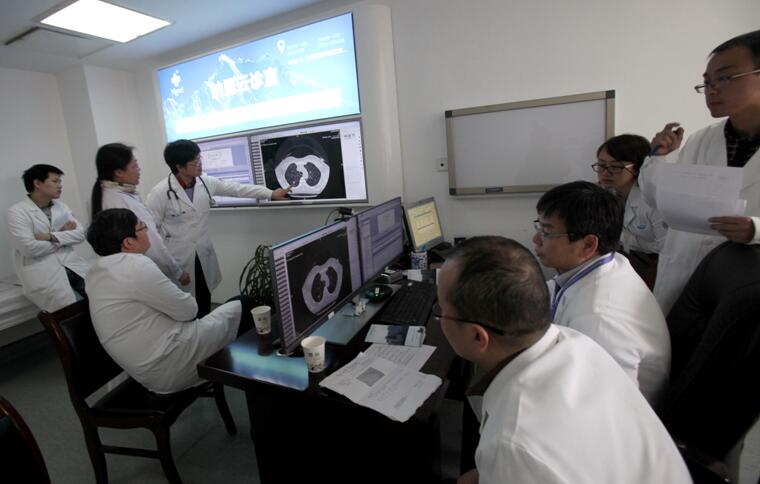 当天的门诊过程中,有一位患者因为单位体检发现肺部小结节,3月后外院复查CT病灶无缩小,心里非常紧张,当她来到联合门诊时,许茂盛主任通过调取后台CT存档资料后发现患者2013年曾来我院门诊做过一次胸部CT,许主任立即调出当时的CT片进行对比,发现当时肺部就有这么一个结节,2年半来结节无变化,专家组一致认为该结节首先考虑为良性结节,只要每年定期复查就可以了,患者开心地离开了诊室。