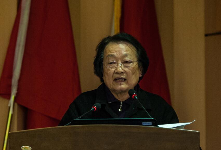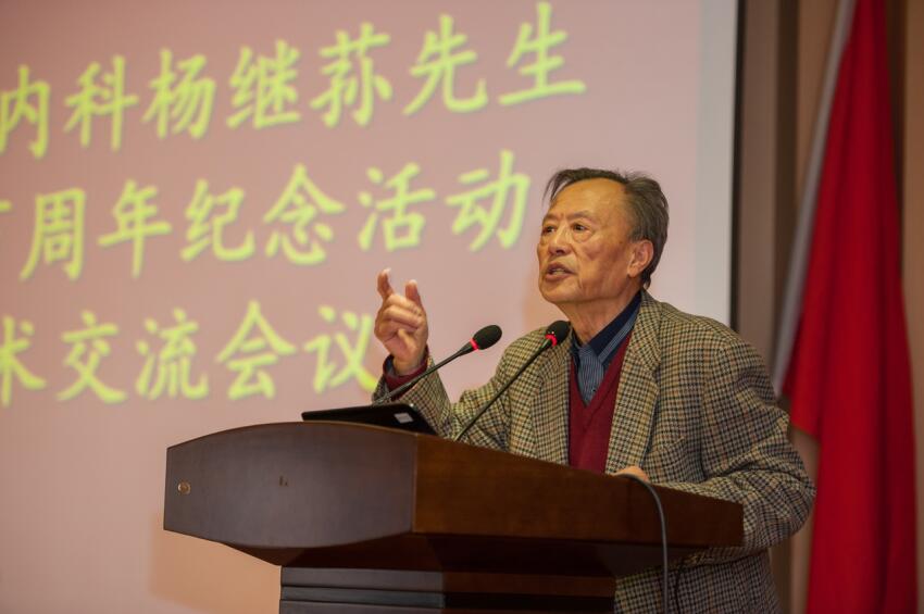 随后,杨老家属代表杨寿藏先生、学术传承人葛琳仪教授、徐志瑛教授及老同事项柏康教授纷纷上台发言,从子女、学生和同事等不同的角度亲切回忆了杨老生平的点点滴滴,向杨老表达了深切的怀念之情。学术传承人潘智敏做了《杨继荪临证精华》学术报告,系统讲诉了杨老的临证思路、特色及临床经验。两百余人的会场座无虚席,反响热烈。