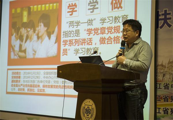 5月17日晚,“两学一做”专题党课走进规培医师课堂。医院党委书记曹毅,作《锤炼党性做合格党员锻炼学术性做合格医生》主题报告。