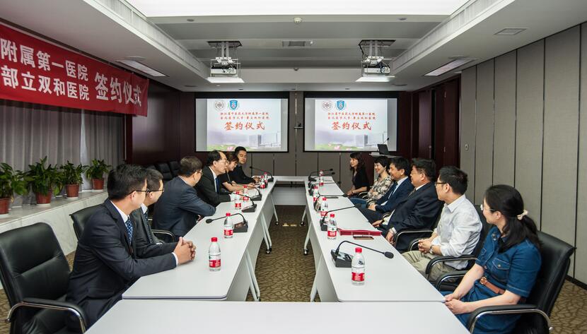 6月26日,是一个双喜临门的日子,一是85周年前的今天,医院正式宣告成立,二是85年后的今天,医院与台北医学大学·部立双和医院再次缔结“姐妹医院”关系。当天上午,双和医院院长李飞鹏与我院院长吕宾共同签署了协议并交换纪念礼物。医院党委书记曹毅、副院长祝亚男,党院办、医务部、护理部等部门负责人参加了签约仪式。