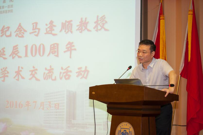 黄河代表学术界作了讲话,他对马老一生在临床与学术上的卓越贡献给予了高度肯定。他指出,马逢顺教授是我国开展血液病领域研究的重要先驱之一,为全世界血液病特别是白血病、再生障碍性贫血治疗提供了效果显著的中国方案。他说,在上个世纪五六十年代马老等与浙江省中医院名老中医药专家合作,共同开展血液病研究,研制出了一套行之有效的中西医结合治疗血液病方法,并研制了“三尖杉”等多个治疗血液病的药物,至今依然是全球治疗血液病的一线用药!几十年来,拯救了无数血液病患者。她建立的浙江省中医院血液科今天已经发展成为省内血液病领域的一面旗帜,在国内也走在前列。他号召,大家以马老为榜样,求实创新,为血液病临床、科研、教学不断奋进!