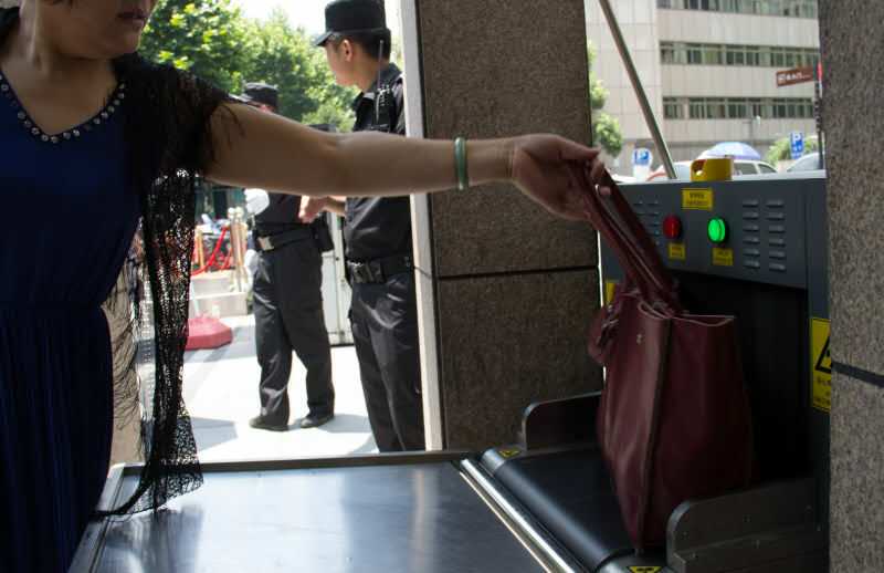 今天一早,小编就悄悄躲在边上“偷窥”,发现绝大多数的人员还是十分配合的,有些人一开始“一愣”,随后“一笑”,接着轻松地将背包等物品放入安检仪,然后快速走到安检通道接受安保人员检查。