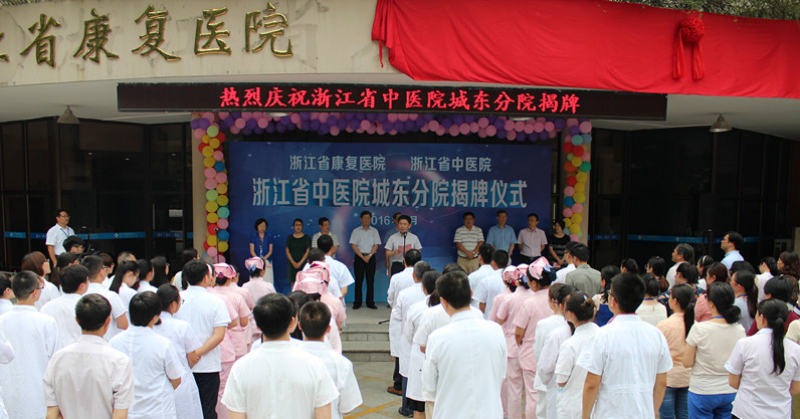 仪式上,郭清在致辞中说,浙江省中医院是浙江中医药大学附属第一医院,不仅拥有雄厚的临床、教学、科研实力,近年来通过积极推进合作办医工作,积累了丰富的合作办医经验,并取得了可喜成效。他指出,本次省中医院与省康复医院合作成立省中医院城东分院,是医院深化合作办医内涵,促进优质医疗资源优化配置的又一有益举措。他要求,省中医院要结合品牌、技术和管理等优势,充分利用浙江民政康复中心(浙江康复医院)良好的医疗环境、设施,借助现代化康复医学手段,发挥中医药针灸、推拿等诊疗技术在康复医疗中的特色优势,建设具有鲜明特色的“康复医院”,积极打造全省乃至全国的康复专业品牌。