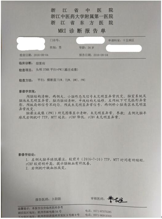 两位患者经多方了解后,辗转来至浙江省中医院神经外科徐震博士处就诊,在专业医生详细解释后,两位患者在省中接受“脑硬脑膜颞肌融合术,颞浅动脉-大脑中动脉吻合术”。术后2周,两名患者顺利出院,张先生肢体麻木再未发生。
