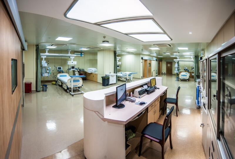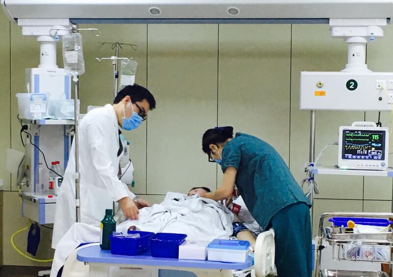 目前,我院EICU开放床位4张,配置有集成吊塔设备、中央监护系统、呼吸机、血流动力学检测设备、床边B超、心肺复苏仪、电除颤仪等先进设备,为危重病人抢救、重症感染治疗、临床营养及危重病人转运等方面提供了有力保障。EICU内,医护人员对危重患者实行24小时连续监护和治疗。