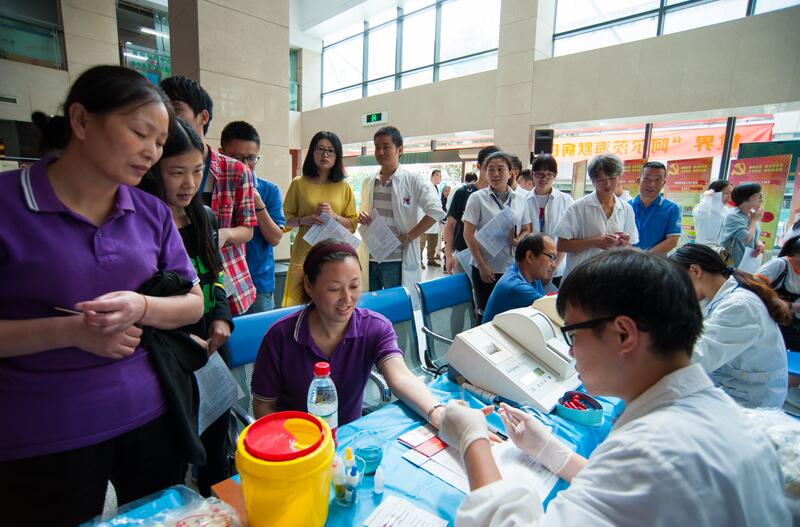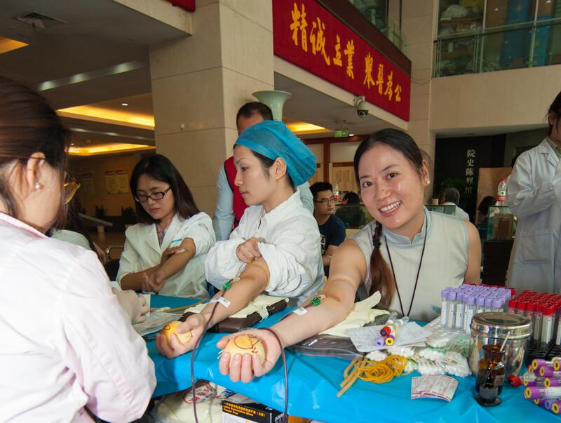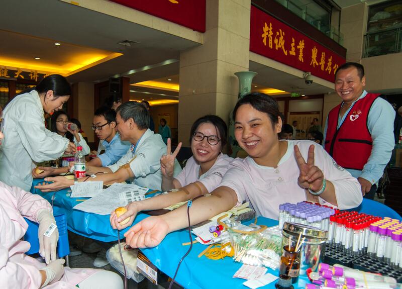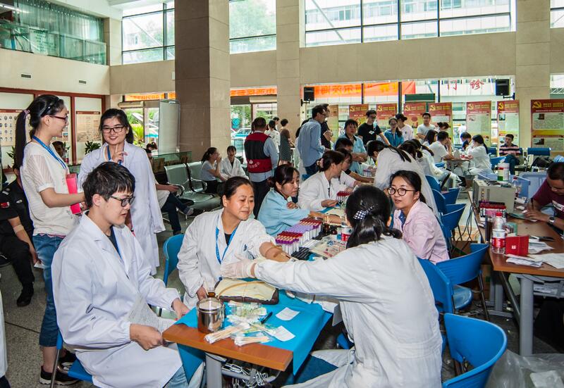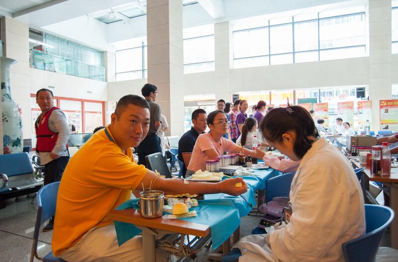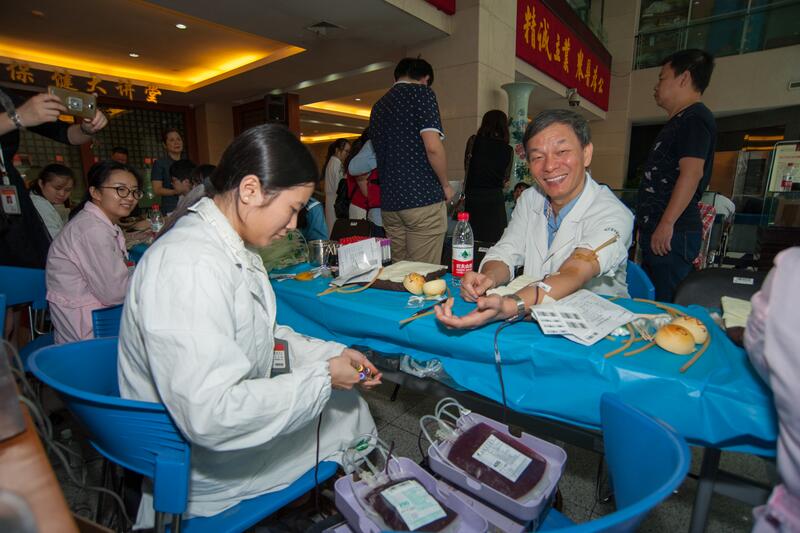 7时30分不到,就有穿白大褂的医师、药师、技师,有穿粉白色的护士,有着蓝色、紫色的后勤人员,还有穿黑色的安保人员,穿米黄色、淡蓝色的家政人员排队来献血了……特别是医护人员,他们最早来到献血点。因为他们中许多献完血后就得去查房、出门诊、或者进手术室开展手术的,有的呢则是刚下夜班的,还有的从家里特地赶过来的。如泌尿外科的严佳胜医师,献完血后一头扎进手术,连续开展4台手术,直到晚上7点才走出手术室。又如17病区骨科护士叶琴“去年人太瘦,血压也偏低,不让我献,经过一年调养,人长胖了,指标也合格了,终于完成了献血心愿”。当天下午,采血车开进下沙院区,同样也是得到了医护人员及各个岗位职工的大力支持。当日共有近250人参加了无偿献血,献血总量近54000毫升,再次突破历史记录。