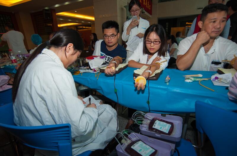 得知最近这段时间我省临床用血紧张的情况后,医院红十字会与省血液中心取得了联系,9月20日早上7时,省血液中心的采血车就开进了医院大门,随后在湖滨院区住院部大厅拉开了“阵仗”。
