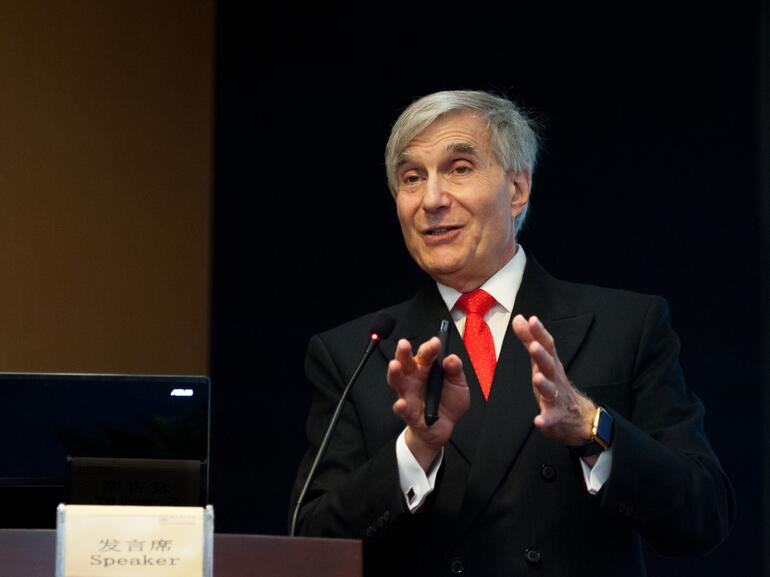 在互动环节,施教授谈到,当科学研究遇到瓶颈,自己曾不下十次向Libby教授请教,每一次Libby教授都极具耐心,建议也极具启发性,而且记忆力惊人。施教授幽默的把Libby教授的大脑比作计算机,他说“我们向他请教的不同的科学问题,Libby教授总能准确无误的报出相关文献的期刊,甚至页码。”除此以外,施教授还向我们介绍了Libby教授的一些“特殊技能和爱好”。原来,这位和蔼睿智的大师,还精通音乐,也会多国语言,同时也是个马拉松爱好者。11月6日抵杭时,得知正在举行“杭州国际马拉松赛”,他像个年轻小伙子一样兴奋,深深后悔没能提前一天达到,不能参加活动。施教授表示,Libby教授拥有超强的记忆、强大的头脑和强健的体魄,是自己终身的导师和合作伙伴。同时他也真诚的建议所有的医疗和科研工作者,在“醉心于工作”的同时,要不忘锻炼身体,拥有健康的身体才是一切工作的基础。