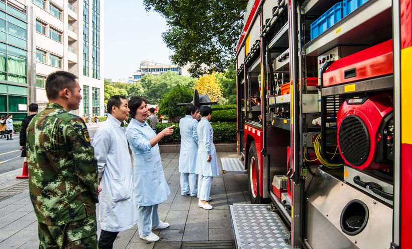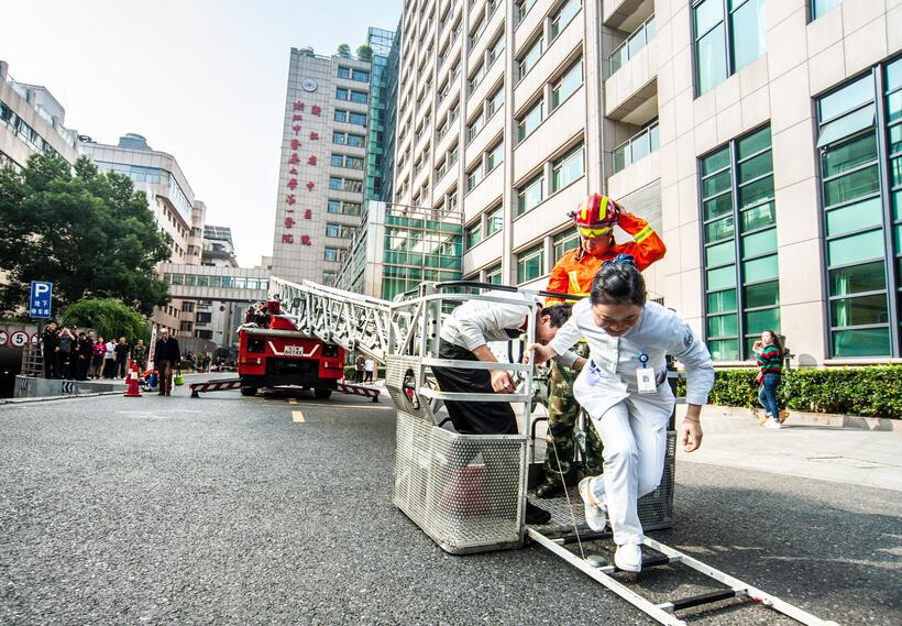 11月18日,医院联合湖滨消防中队在住院楼仁和广场举办了消防器材展和登高消防车救援演练活动。同时,在活动现场,还开展了微型消防站业务技能比武活动。