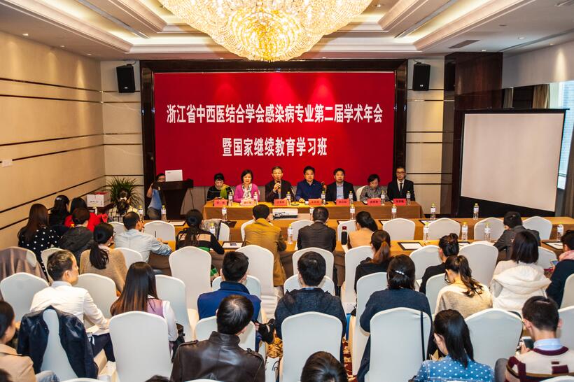 11月17日,由我院承办,浙江省中西医结合学会主办的感染病专业委员会学术年会暨国家级继续教育班在杭成功举办。浙江省中医药管理局副局长吴建锡,医院副院长、省中西结合学会感染病专业委员会主任委员江荣林,下沙院区副院长叶卫江以及来自全省各级综合医院、中医院从事感染病同行近百人参加了会议和培训。