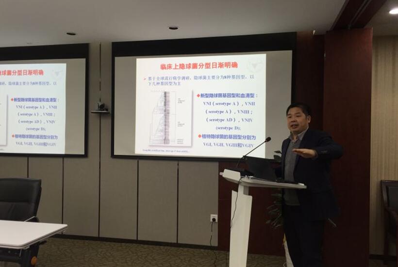 接着,俞云松系统而又生动的为大家解读了隐球菌病的流行病学与诊治规范,尤其是隐球菌脑膜脑炎的治疗,结合实际病例,详尽地分享了诊治经验。隐球菌脑膜炎与肺隐球菌病的治疗在诊断、疗程、用药种类、剂量上均有所不同,又有某些相似,临床上必需有所区分。而一些当成是恶性肿瘤经手术切除,确诊为肺隐球菌的病人,也不是手术切除了就一劳永逸了,仍需要进行药物治疗,并定期随访、复查。活动中,大家积极提出自己在临床中遇到的疑难病例,俞院长都一一解答。风湿免疫科的宋欣伟主任,更是率领风湿科的众位医生,带上临床病例和CT片,就临床上遇到的疑似隐球菌病和俞院长进行了深入探讨。