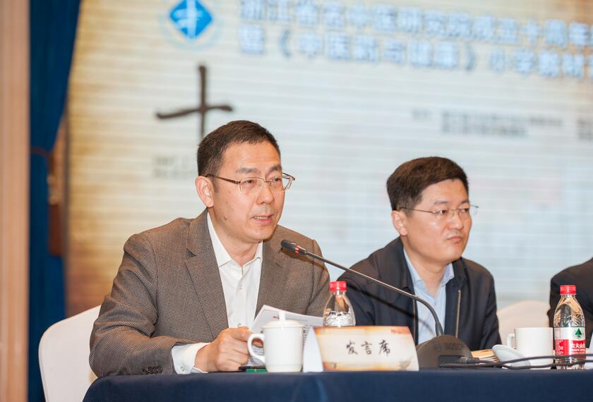 浙江中医药大学校长方剑乔代表浙江中医药大学党政班子,对浙江省名中医研究院成立十周年表示热烈祝贺。他说,作为省中医药人才培养和中医药科技创新的主阵地,浙江中医药大学一直以来高度重视中医药传承与创新工作,学校深入学习领会和贯彻落实习近平总书记发展中医药的新思想新论断新要求,进一步增强文化自信和战略定力,扎实推动中医药事业发展各项战略举措落地生根。