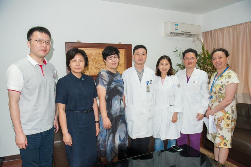 7月4日,医院院长毛威、党委书记黄琦及人力资源部负责人等与圆满完成“希望之光”帮扶工作的专家团队成员(肿瘤内科刘振东副主任医师、护理部顾晓春副主护师和血液内科戴铁颖主治医师)举行了座谈,对他们出色完成任务表示感谢,并希望他们尽快重新适应工作,同时积极与当地保持联络,成为两院携手发展的使者。
