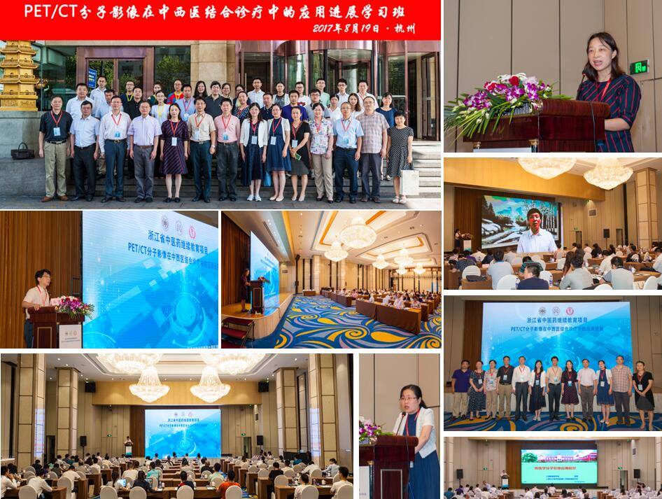 本次学习班师资力量雄厚,学习班邀请了省内外顶尖学者授课。上海健康医学院院长 、中华核医学会前任主委黄钢教授,浙江大学附属第二医院核医学科主任张宏教授,第二军医大学长海医院核医学科主任左长京教授,浙江省中医院肿瘤一区主任郭勇教授,浙江大学附属第一医院放射科主任陈峰教授,中山大学附属佛山医院核医学科主任 冯彦林教授,苏州大学附属第三医院核医学科主任王跃涛教授,浙江大学附属第一医院PET中心主任赵葵主任,上海交通大学附属第一医院核医学科主任赵晋华教授,上海仁济医院核医学科主任刘建军教授,上海华山医院核医学科左传涛副主任,浙江省中医院核医学科张丽霞主任等先后做了精彩报告。一天10余个报告,紧凑而又高效,与会同道们直呼过瘾。学习班也在这种紧张有序的氛围中,首届PET/CT分子影像在中西医结合诊疗中的应用进展继教班顺利落下帷幕。