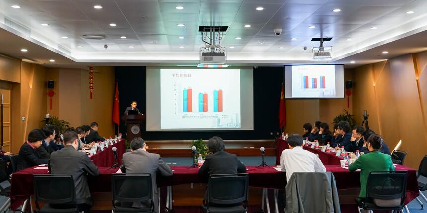 座谈中,孙秋华、方剑乔一行在听取医院院长毛威关于2017年医院任务及医院未来三年规划的汇报后,对医院发展及未来规划表示了肯定。汇报中,毛威从医院医疗情况、重大项目争创、下沙院区发展、教学与科研工作、合作办医等方面进行了回顾,并对医院未来三年的规划作了汇报,同时对医院目前存在的问题、面临的形势和挑战进行了客观分析。座谈中,各分管院领导也就各自分管工作对医院建设发展中目前存在的问题和不足做了分析,并提出了发展和突破的主要举措。