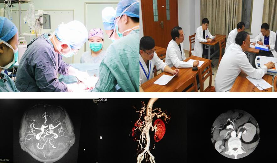 黄先生病情的确很复杂,胆囊结石,慢性胆囊炎急性发作,胆总管结石,颈内动脉颅内段多发动脉瘤,腹腔干、左侧肾动脉、肠系膜上动脉分支多发动脉瘤,双侧髂动脉夹层动脉瘤……入院后,医院迅速召集神经内科、神经外科、消化学科群、放射介入、重症监护、麻醉团队共同开展讨论,评估围手术期动脉瘤破裂风险,决定为黄先生实施手术治疗,并制定了周密的围手术期应急处理预案。