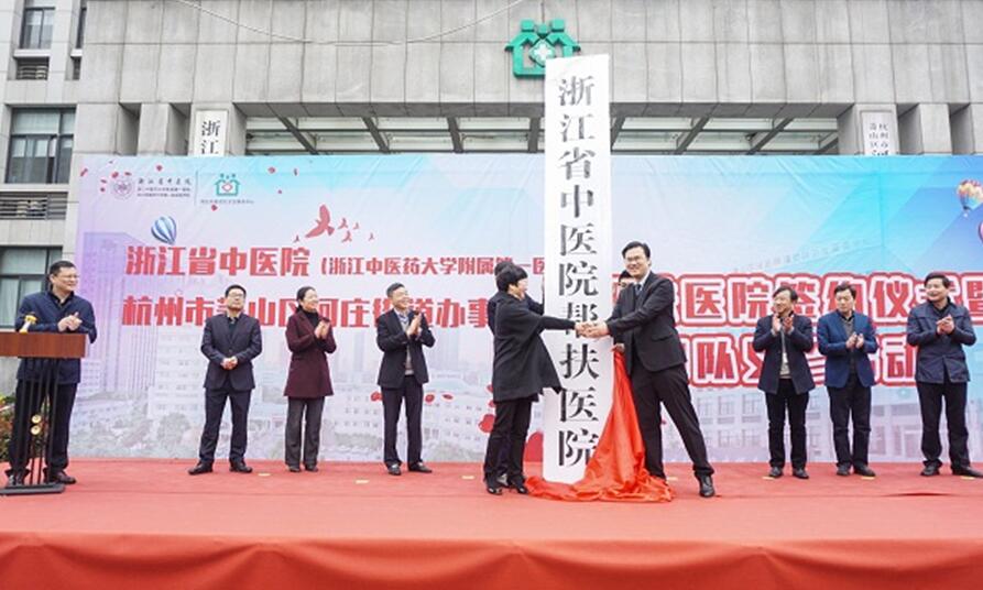3月19日上午,浙江省中医院与河庄街道合作签约活动仪式在街道社区卫生服务中心举行。大江东产业集聚区党工委委员、管委会副主任李国梅,浙江省中医院副院长、下沙院区执行院长张烁出席签约仪式,并共同为“浙江省中医院帮扶医院”揭牌。浙江省中医院副院长叶卫江、党委副书记周莹,集聚区社发局、大江东社发局及河庄街道相关负责人,浙江省中医院相关职能科室负责人、义诊专家等共同参加了签约仪式。