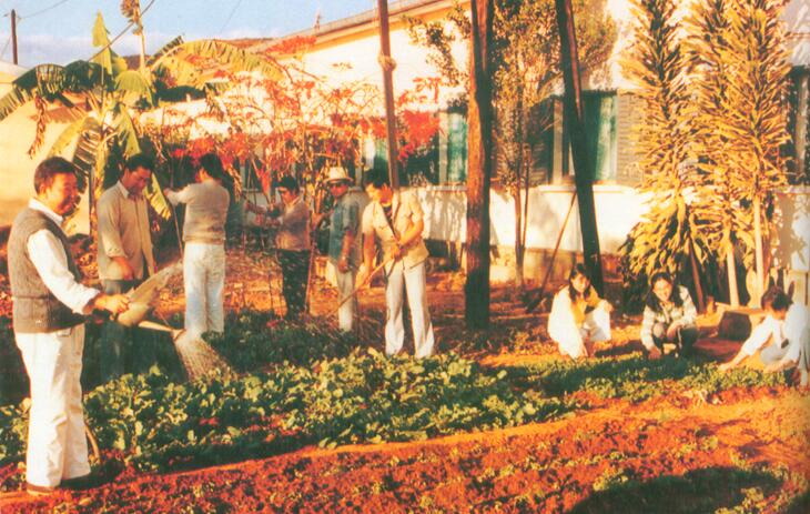 为了吃到祖国的味道,同去援非的还有医院食堂的蒋长根师傅,他们一起在营地边上开垦种菜,周末大家都一起来帮忙耕种