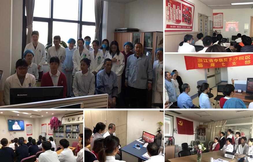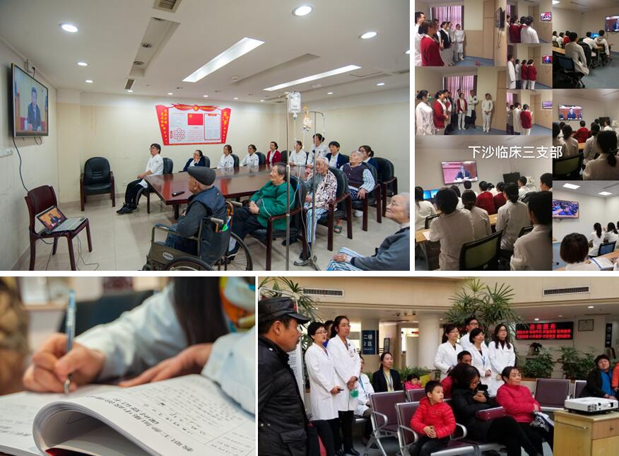 尤其是在老年医学科,在医院安排下,九点多一点,住院的离退休老同志们有些甚至还挂着盐水,纷纷在护理人员陪同下来到示教室,一起观看直播,感受改革开放以来国家取得的巨大进步。住院大厅里,许多等候的患者、家属和医护人员驻足观看。会议室里,医院党政领导班子和职能科室党员干部、入党积极分子等一边学习,一边做着笔记。