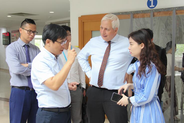代表团一行在鲁科达陪同下走访了各科室,英国帝国理工学院教授、英国皇家布朗普顿医学院心脏血管研究中心的联席主任、帝工先进技术研究院联席院长Prof.David Firmin深入走访了医学影像科,了解了各个在用设备的使用情况及影像科运行情况。鲁科达热情、详细地介绍了医院发展历程、基本情况及相关特色科室,他表示医院十分非常重视与国际医疗的接轨和融合,这为双方深化合作提供了机遇,希望医院能与帝工学院及帝工先进技术研究院建立更紧密、更深入的合作关系。随后,双方在508会议室进行深度交流。
