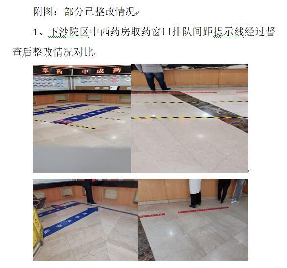 疫情发生以来,督导组已针对两院区通道发热预检流程、住院患者及陪护人员个人防护措施、隔离病房通道设置、口罩等医用垃圾回收、住院部保洁服务、门急诊告示牌内容改进和完善、食堂餐饮安全措施、疫区身份人员来院就诊流程、健康绿码使用和出示流程、自助机屏幕消毒工作、手消剂放置、隔离患者出院结账流程、住院病人登记工作、门诊服务窗口排队间距提示线设置、两院区防疫物资调配等方面进行了多轮次、高频率的精准监督,迄今共计发现问题20余处,提出整改建议50余条。所有问题均与相关职能部门、临床和医技科室、护理单元等进行了及时沟通,绝大部分得到了积极配合、有效整改和及时反馈。对少数未及时响应的科室部门采取 “紧盯跟踪”手段,层层压力传导,坚决要求整改落到实处。对个别临床科室就防疫物资发放不足提出的疑问,也及时通过核查做好解释和回复,同时对院感科、采供部等具体工作流程提出了改进的建议。