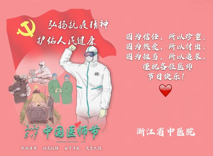 在这节日之际,医院党政班子还希望广大医师继续发扬“敬佑生命、救死扶伤、甘于奉献、大爱无疆”的崇高精神,以时不待我的紧迫感、舍我其谁的责任感,永攀医学科技高峰,发扬中医药特色,努力提高医疗技术水平,持续改善医疗服务,不断提升群众就医获得感,为人民群众提供全方位全周期的健康服务,为建设健康浙江和健康中国添砖加瓦。
