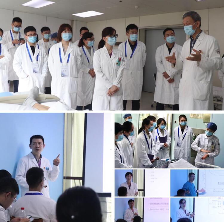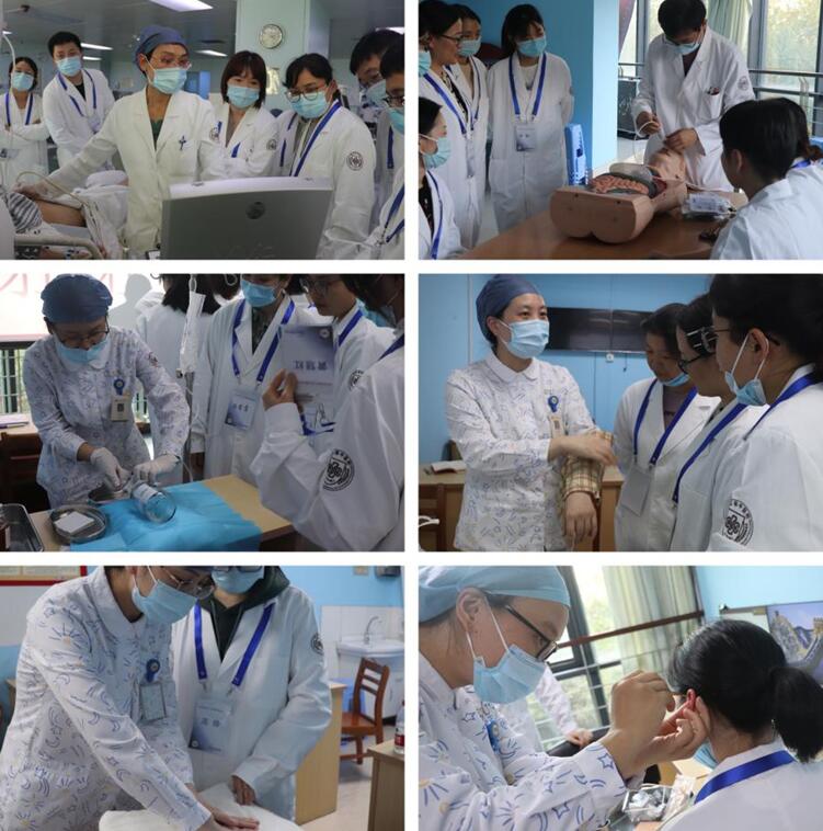 紧接查房结束,由学了年轻医师通过病例分享课程形式对我科在管理重症患者过程中肠内营养如何实施进行了简述。后由学科医师团队分别针对“重症患者肠内营养途径选择”、“重症患者胃肠功能衰竭的中医诊治和研究进展”、“肠源性感染与肠内营养”、“滋养喂养、足量喂养和补充性肠外营养”等热门问题进行讲述并答疑解惑。学科超声团队通过理论教学与真人实操讲述超声在ICU内胃肠动力评价以及肠内营养实施过程中的运用。最后由学科护理部给学员带来“中药外敷”、“耳穴贴压”等中医护理操作技能体验与实操。