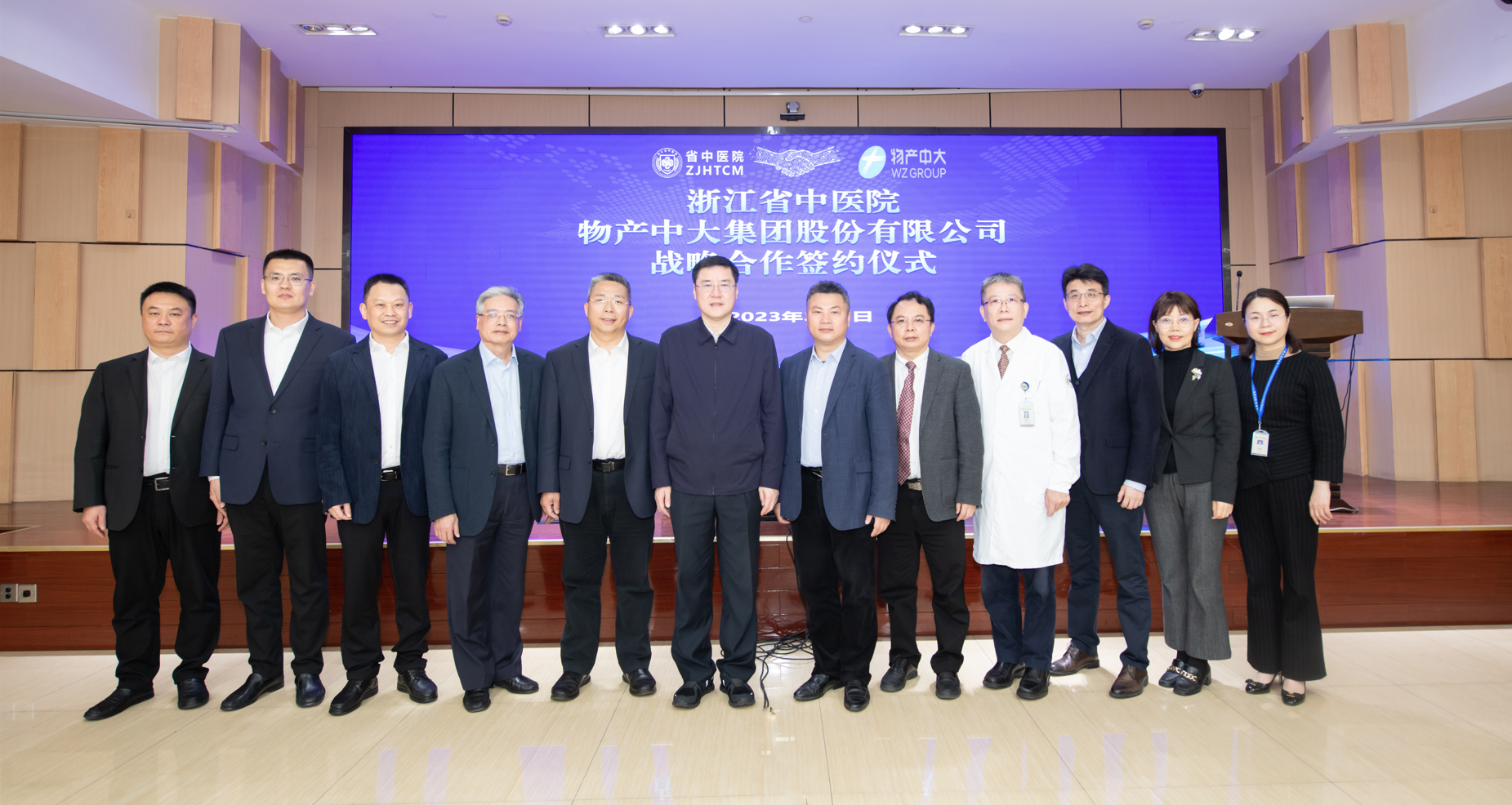 物产中大金石董事长王洪林、物产中大健康董事长洪卫良、物产中大集团办公室主任殷畅、供应链二部总经理叶光明,浙江省中医院副院长钱宇、徐敏、吴建浓,院长助理娄海芳等参加签约仪式。