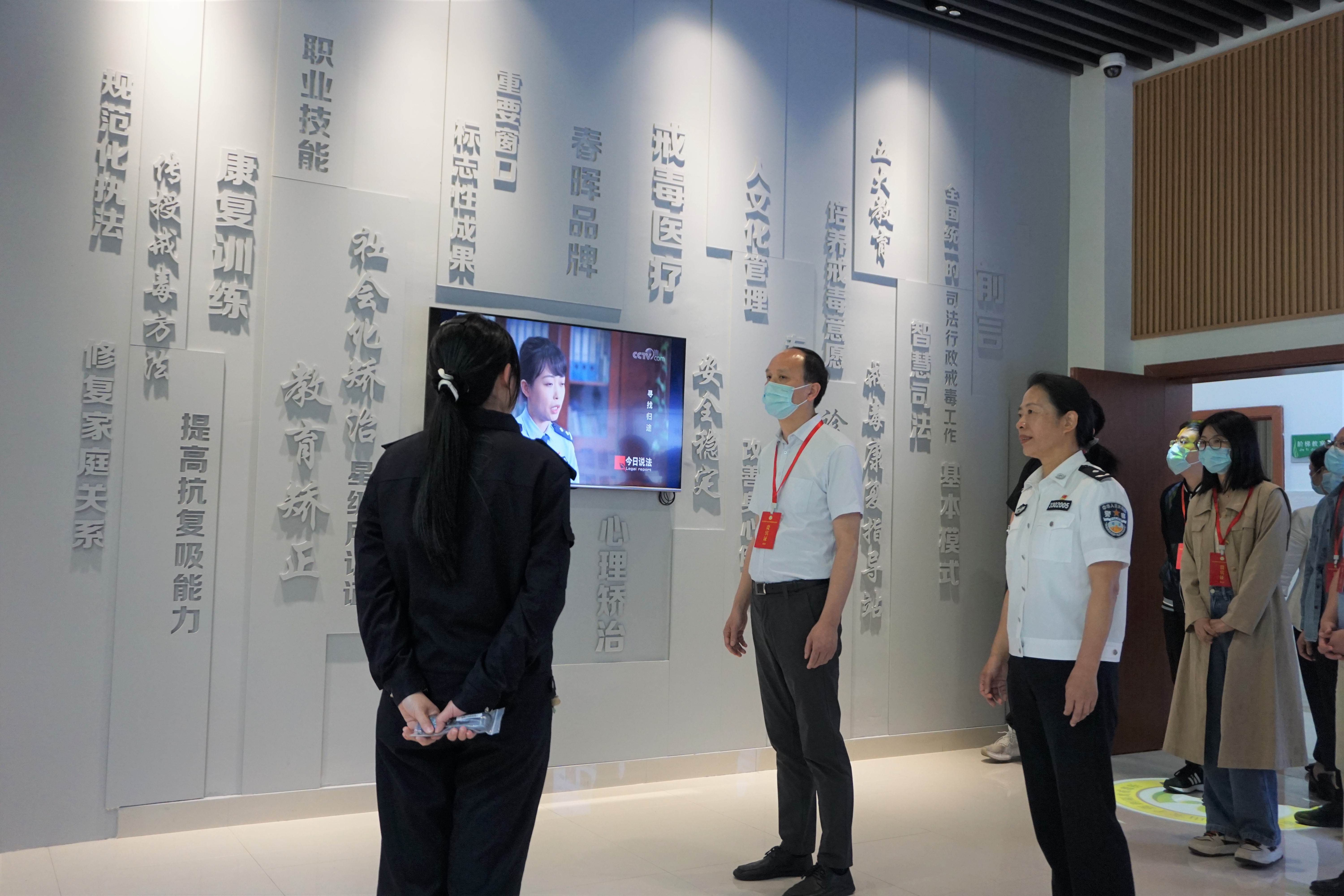 义诊活动开始前,双方还开展了座谈会。省戒毒管理局党委委员、副局长胡海珊、省莫干山女子强制隔离戒毒所黄芳等领导出席。座谈会上,胡海珊及所领导向杜红根一行简要介绍了浙江戒毒工作的发展情况,并陪同参观了专业中心、禁毒展厅等地。