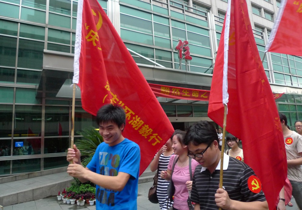 6月25日上午,医院党委、团委组织青年职工开展了庆祝建党九十周年环湖毅行活动。青年同志们于上午9:20从医院出发,沿着西湖一路向革命烈士英雄纪念碑进发,在大雨中,扛着红旗冲锋,胸前的党徽成为西湖边一道美丽的风景线。中午10:40队员们陆续到达云居山革命烈士纪念碑,向人民英雄敬献鲜花并默哀致敬。此次活动意在追忆我党在千辛万苦中所建立的丰功伟绩,祭奠我党走过的艰苦旅程,在毅行途中忆苦思甜,在建党90周年这个特殊的日子里,向人民英雄致敬。