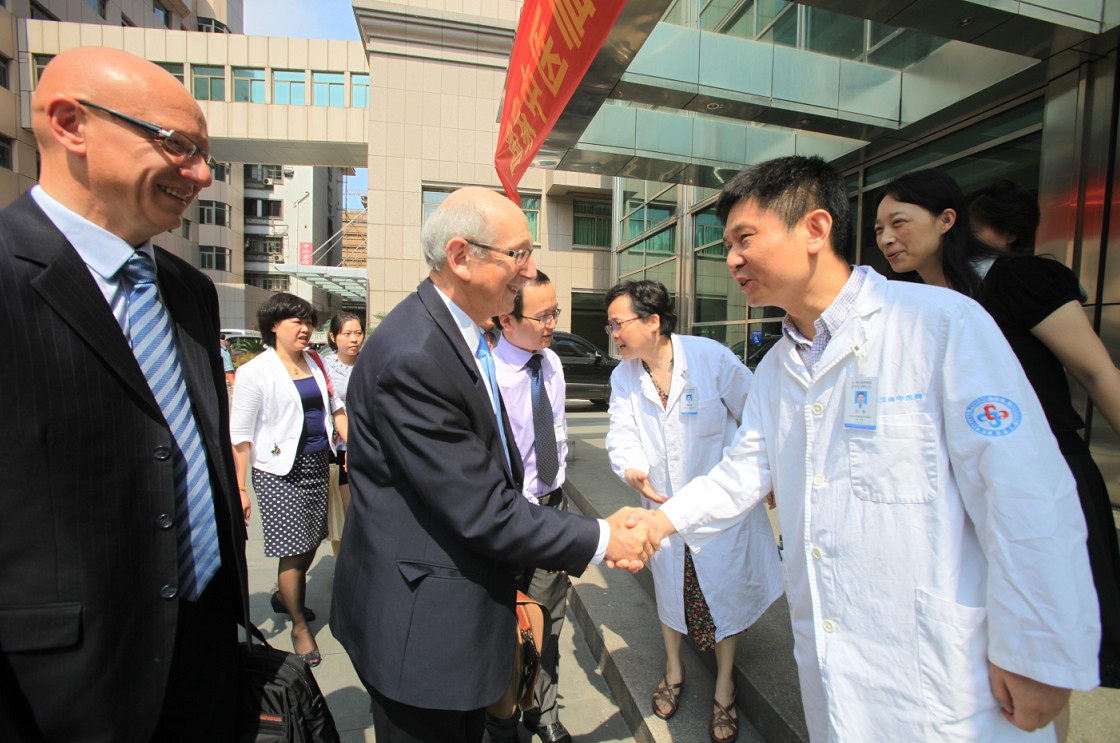 7月4日,由欧洲血液与移植协会巴黎分会负责人、法国圣安东尼大学著名的血液学及细胞治疗学教授N.C.Gorin带领的法国专家一行6人来我院参观考察,并参加了医院举行的国家中医临床研究基地造血干细胞移植应用中法国际交流会议。医院院长吕宾、党委副书记黄琦、基地办公室主任陈华,科教部负责人、血液病学科负责人等热情接待了来访的贵宾。血液科、血液细胞分子生物学实验室、中心实验室等相关科室专家参加了会议。会上,党委副书记黄琦和血液科负责人分别介绍了以我院中医临床研究基地国际交流情况和血液病重点病种的研究进展。N.C.Gorin教授一行就造血干细胞的应用、中医中药干预移植及未来发展同我院专家进行了广泛而深入的探讨与交流。通过交流,双方医院在学术互访、人才交流和培养等方面初步达成合作共识。