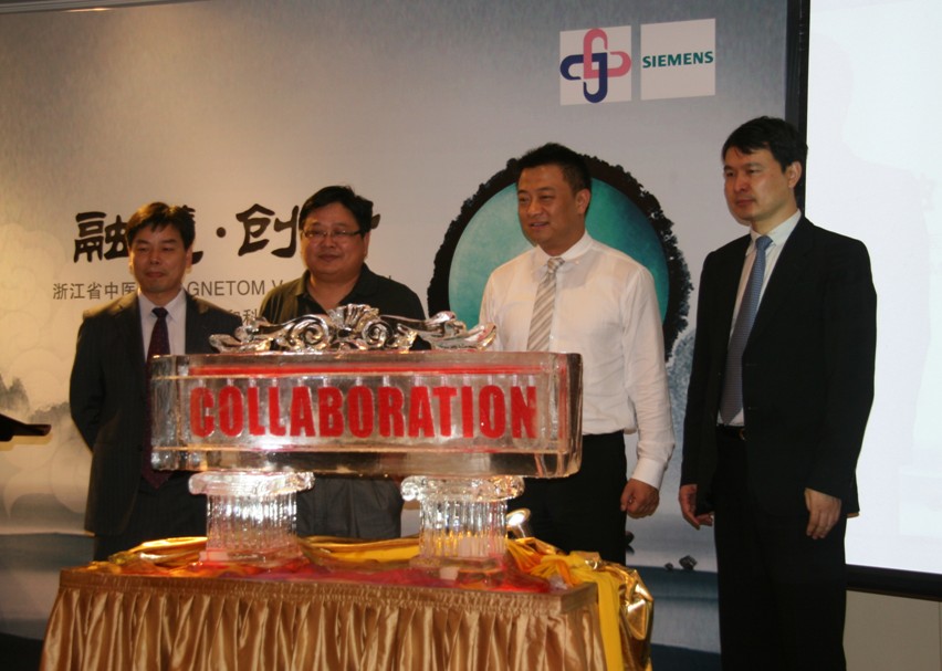 值此建党90周年,建院80周年喜庆之际,经过4个多月试运行的德国西门子公司最新一代3.0T磁共振(MAGNETOM Verio)正式开机。医院在杭州国大雷迪森广场酒店隆重举行了开机仪式暨MR新技术研讨会。院党委书记曹毅、西门子中国医疗业务领域副总裁王皓出席了仪式,80多位省内外医学影像学专家及同仁参加了研讨会。